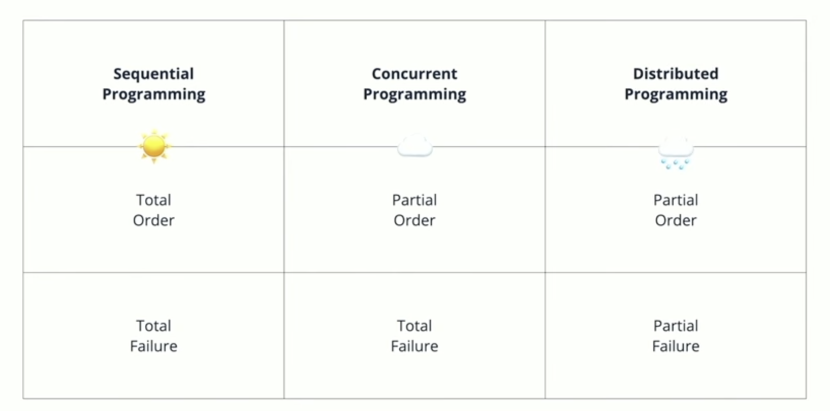 Multicore computers already deal with concurrency, parallelism and partial order, as we saw in Tornow’s diagram above, so this is not specific to distributed systems.
